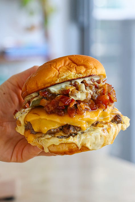 The Naughty Burger, an exclusive from my cookbook, being served by none other than Skinny Louie!
